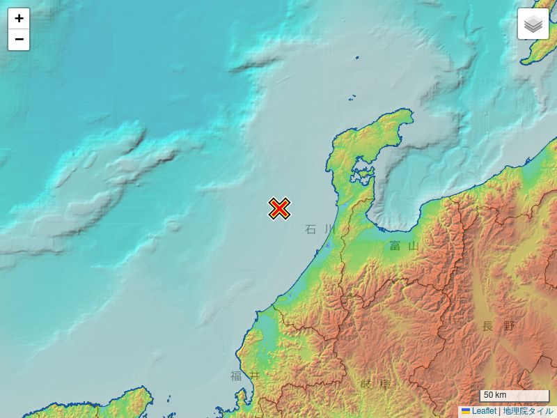 震源の位置 | 北緯 37.5度,東経 137.2度 |