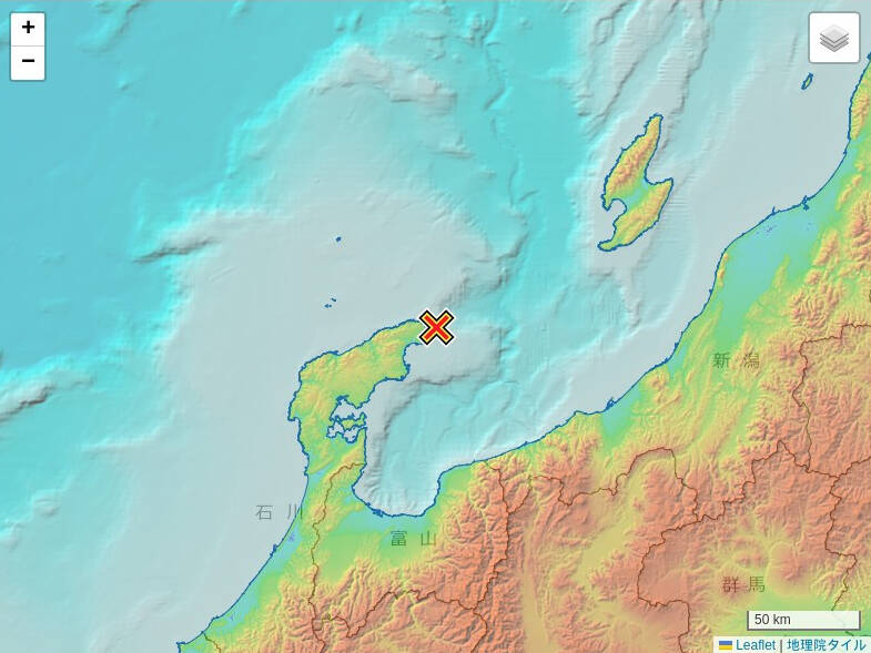 震源地能登半島沖
