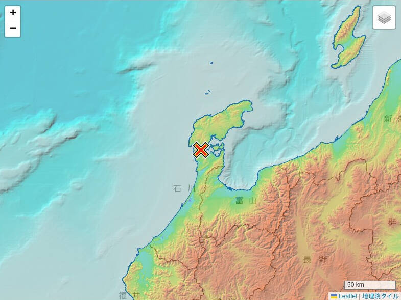 2024年1月1日 21:00ごろ石川県能登地方(深さ約10km)を震源とする震度2の地震がありました。津波警報等(大津波警報・津波警報あるいは津波注意報)を発表中です。