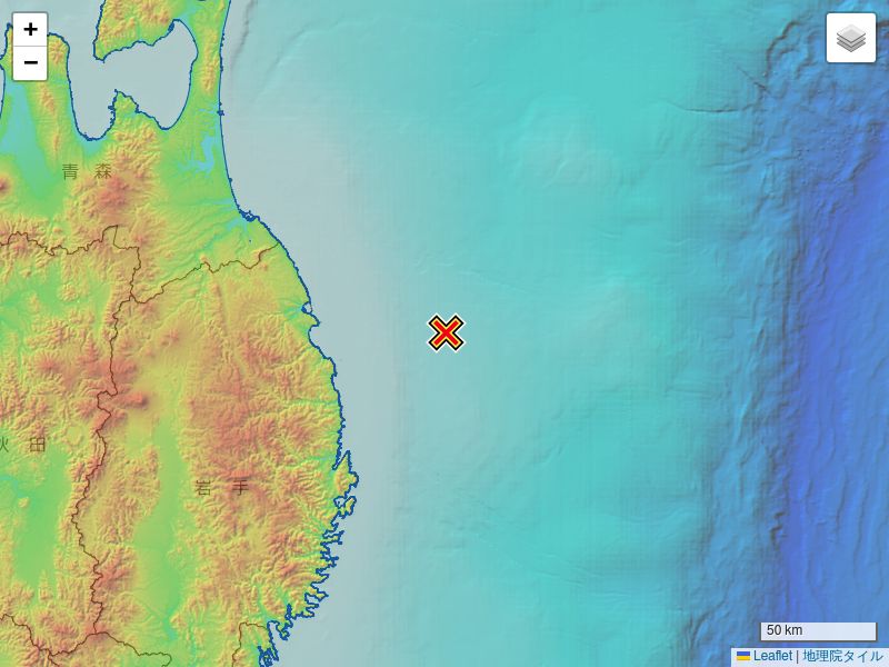 震源地秋田県内陸北部