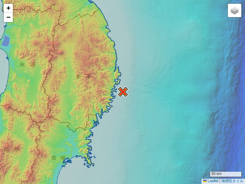 2024年2月21日 20:28ごろ岩手県沖(深さ約50km)を震源とする震度1の地震がありました。この地震による津波の心配はありません。