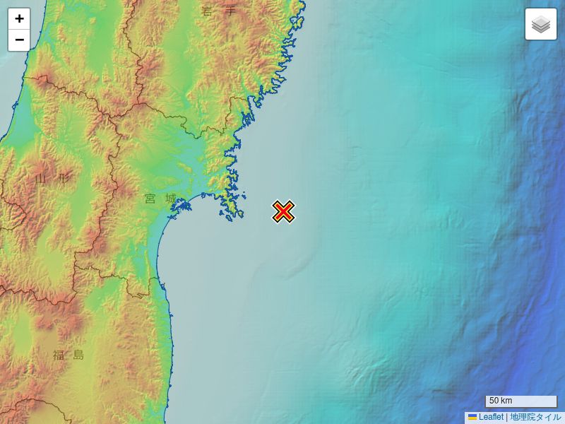 | 震源の位置 | 北緯 37.5度,東経 141.3度 |