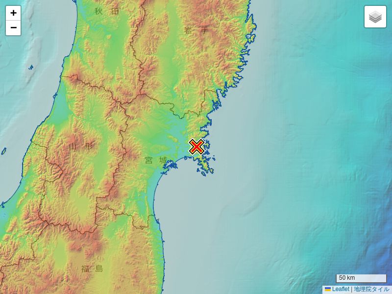 2025年10月15日 17:50ごろ宮城県中部(深さ約70km)を震源とする震度2の地震がありました。この地震による津波の心配はありません。