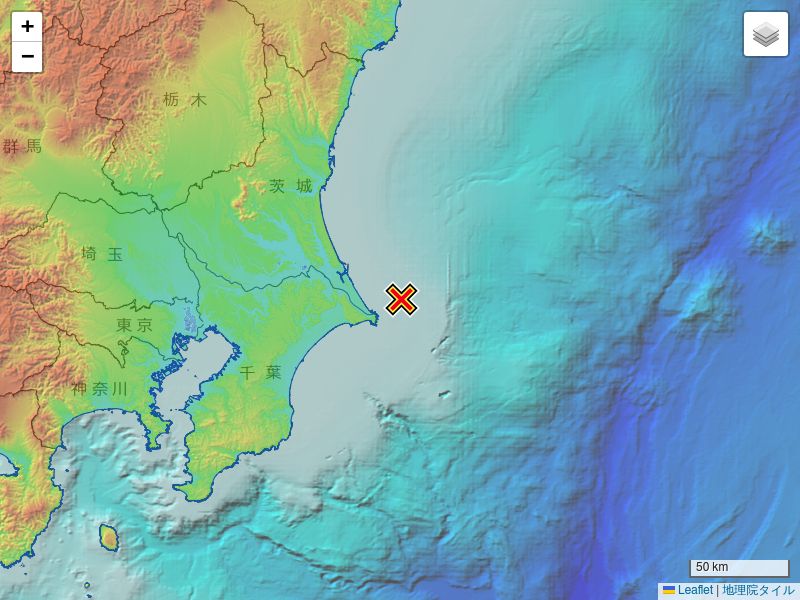 2025年10月24日 15:47ごろ千葉県北西部(深さ約70km)を震源とする震度2の地震がありました。この地震による津波の心配はありません。