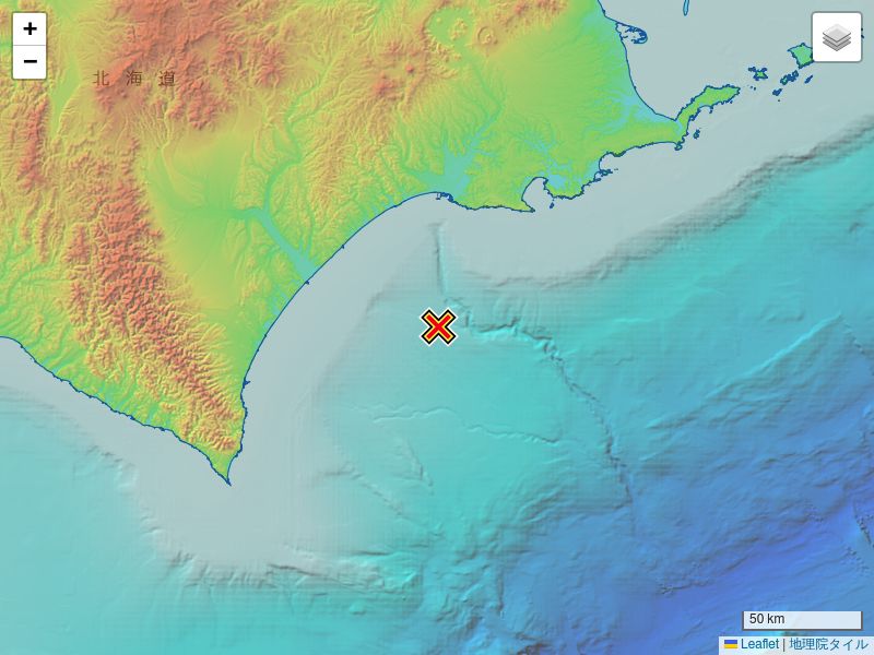 2025年11月27日 1:43ごろ釧路沖(深さ約80km)を震源とする震度2の地震がありました。この地震による津波の心配はありません。