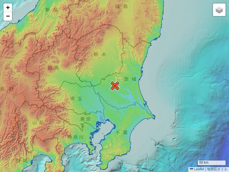 2025年12月12日 19:05ごろ茨城県南部(深さ約50km)を震源とする震度4の地震がありました。この地震による津波の心配はありません。
