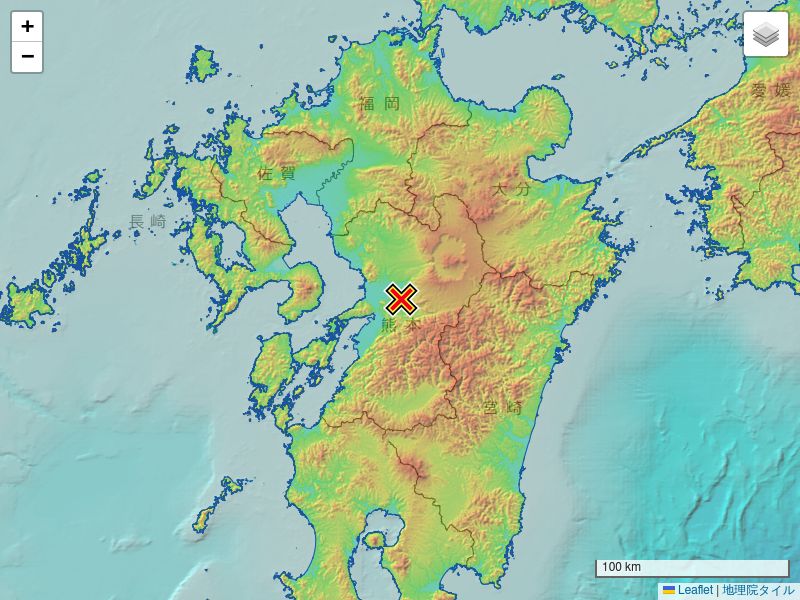 | 震源の位置 | 北緯 32.7度,東経 130.8度 |