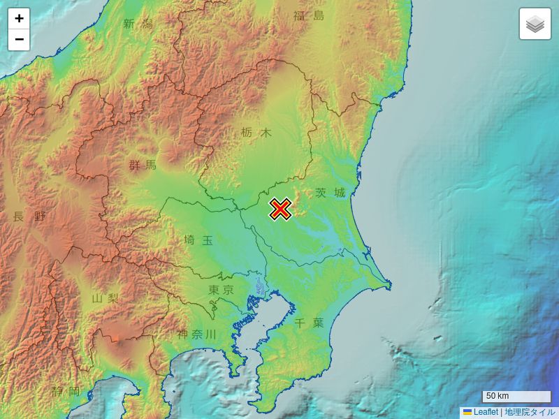 2026年1月25日 11:47ごろ茨城県南部(深さ約50km)を震源とする震度2の地震がありました。この地震による津波の心配はありません。
