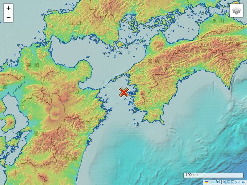 2026年2月3日 0:11ごろ豊後水道(深さ約40km)を震源とする震度2の地震がありました。この地震による津波の心配はありません。