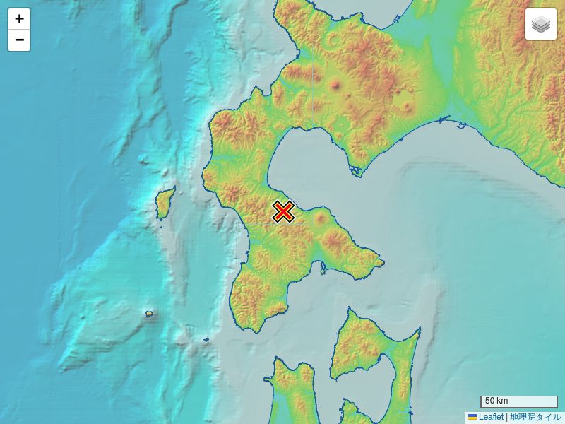 2026年3月7日 2:23ごろ渡島地方北部(深さ)を震源とする震度1の地震がありました。この地震による津波の心配はありません。
