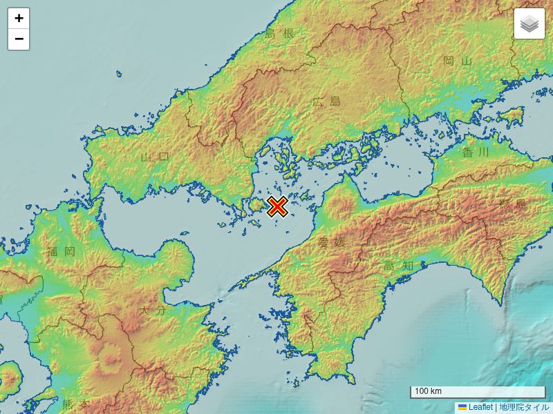 2026年4月4日 6:39ごろ安芸灘(深さ約50km)を震源とする震度2の地震がありました。この地震による津波の心配はありません。