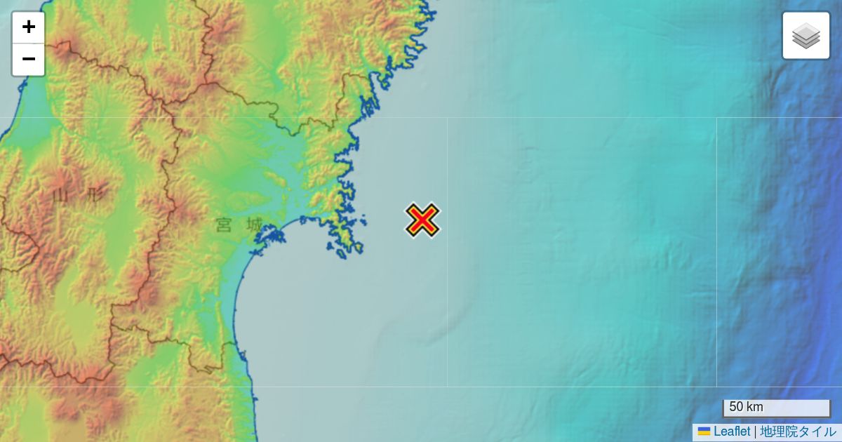 2026年4月4日 19:36ごろ宮城県沖(深さ約60km)を震源とする震度3の地震がありました。この地震による津波の心配はありません。