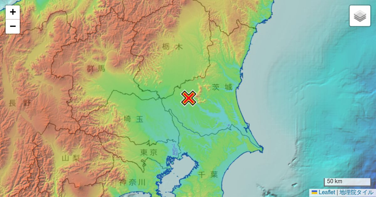 2026年4月5日 16:34ごろ茨城県南部(深さ約50km)を震源とする震度2の地震がありました。この地震による津波の心配はありません。