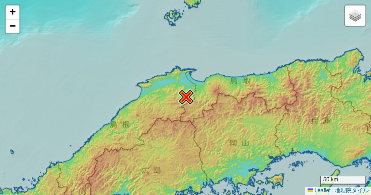 2026年4月17日 2:40ごろ島根県東部(深さ約20km)を震源とする震度2の地震がありました。この地震による津波の心配はありません。